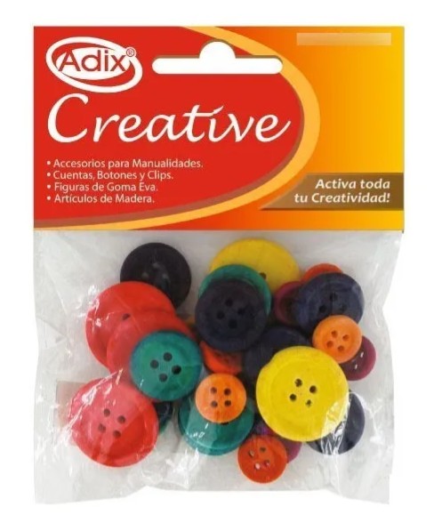 Botones Madera Redondos Pack 30 Unidades Multicolor Creative Adix Manualidades Liso