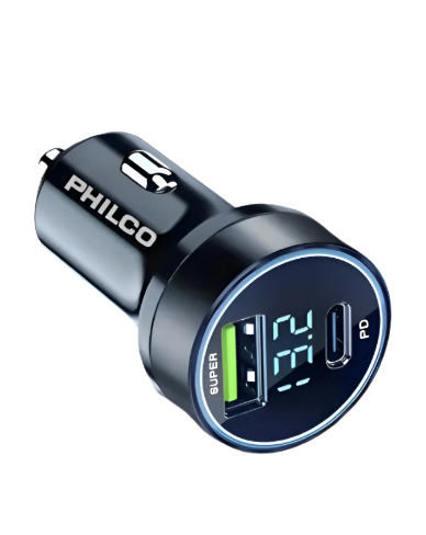Cargador Auto Qc 3.0 Usb + Usb C Con Pantalla Led Philco Color Negro