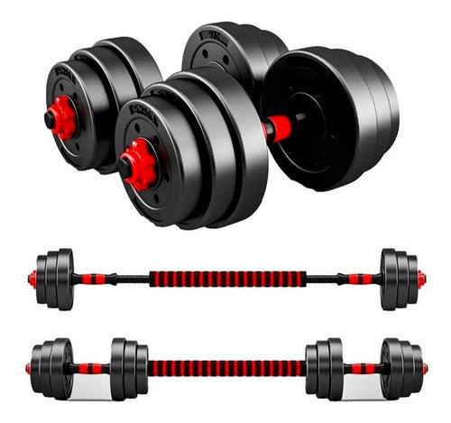 Set 2 De Mancuernas Ajustable De 15kg Con Unión Extensor Color Rojo